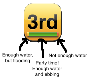 enough water and *flooding*, and red indicates water too low.