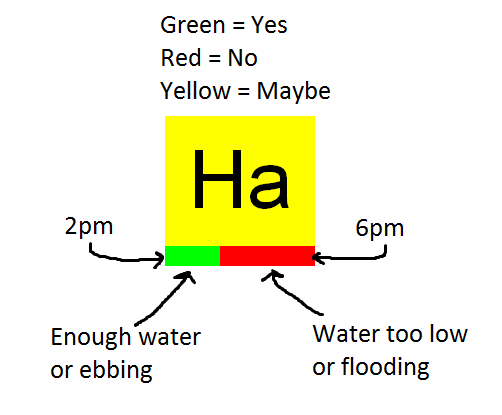 with a tide table and graph for daylight hours.